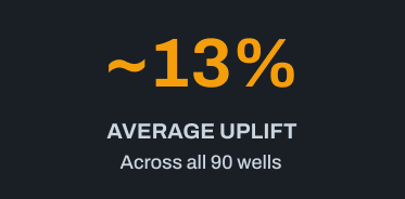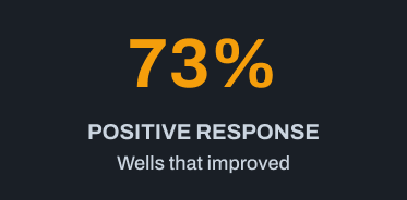 73% of wells responded positively to optimization. Average uplift across the cohort was approximately 13%. Stripper wells showed 39% average uplift. P&A decisions were deferred on multiple wells that responded to optimization.